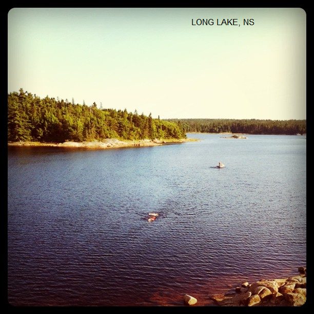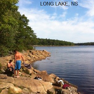 DIRECTIONS | From downtown Halifax, get to the rotary and take the St.Margarets Bay exit. Continue on that road for approx 7kms until you see water on your right. As you are descending the hill, park on the shoulder area to the right and find the access path on your left, it is quite worn and has a metal bike post. If you see the parking lot on your left you've gone too far although you can also park there and take that entrance. Either way you'll come to the lake PHOTO and can hike around further to the large rock wall PHOTO , PHOTO or continue onwards around the lake to your desired swimming spot.