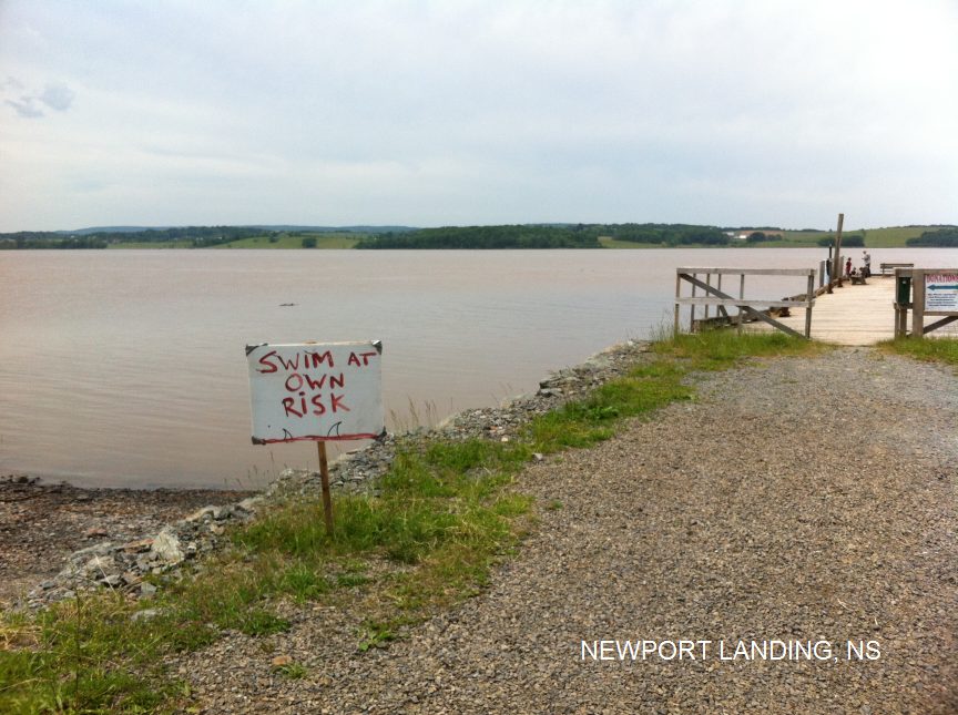 NEWPORT LANDING [NEWP]: This from a visitor: "This is great swimming in the mighty Bay of Fundy at the Avon River. PHOTO , PHOTO , PHOTO . It's very muddy so be sure to check for depth before you jump and don't go out too far mud sliding. There may be people fishing on the wharf so be respectful of their space. CAUTION: Be very careful of the tides, they are honestly the largest in the world and cover A LOT of ground very quickly. Only mudslide at low tide and only dock jump at high tide.