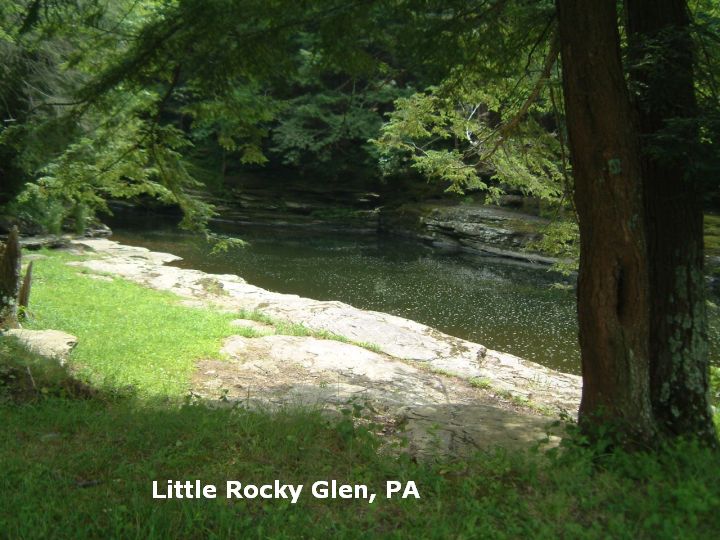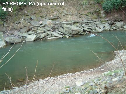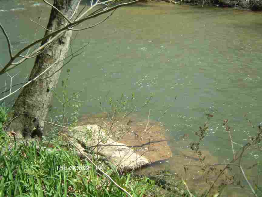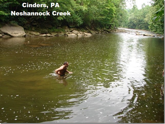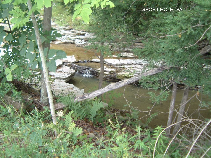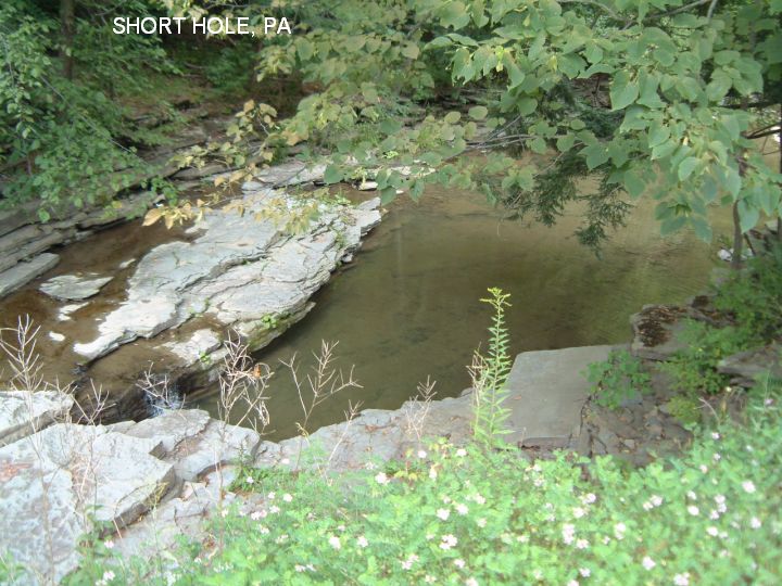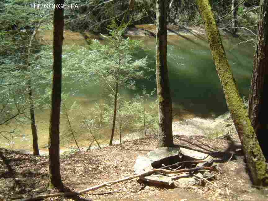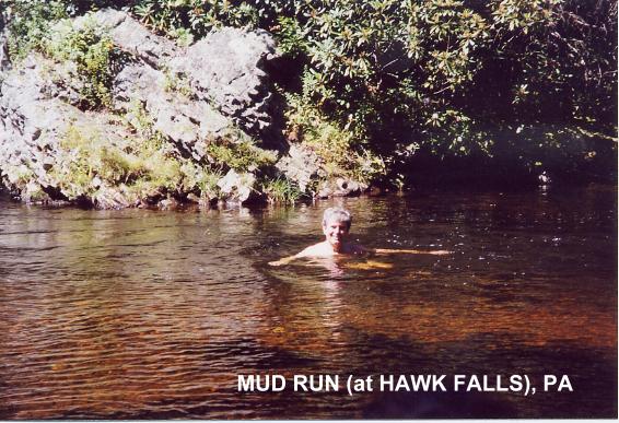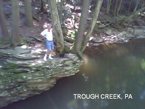 STONY FORK [STON]: Several very scenic swimming holes in Stony Fork Creek. PHOTO 1 , PHOTO 2 , PHOTO 3 , PHOTO 4. This description from a visitor in 2007:" At Little Falls, Stony Fork PA, the depth of the water here in the summer during the hot season is 7-10 feet deep. Great place for swimming, must be careful jumping because there are two large boulders in the water that are larger enough to stand on in the middle and keep you above water. Within 30 feet of Little Falls, downstream around the bend is another deep pool 6 to 8 feet deep during the summer season. From where the pull off is for Little Falls, go down the road less than a half a mile (actually, about .1 miles) and there is a steep trail that goes over the bank. At the end of this trail is the prime jewel of the creek. Big Falls, Stony Fork PA. YOUTUBE . It is a deep azure colored hole whose depth is much debated." (see what you think it is.) "People jump off the tops of the pine trees around the hole into the water and never touch bottom. No one ever has". (or so it is said...)"
