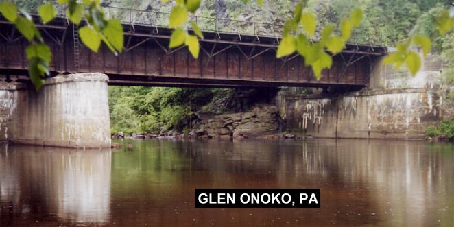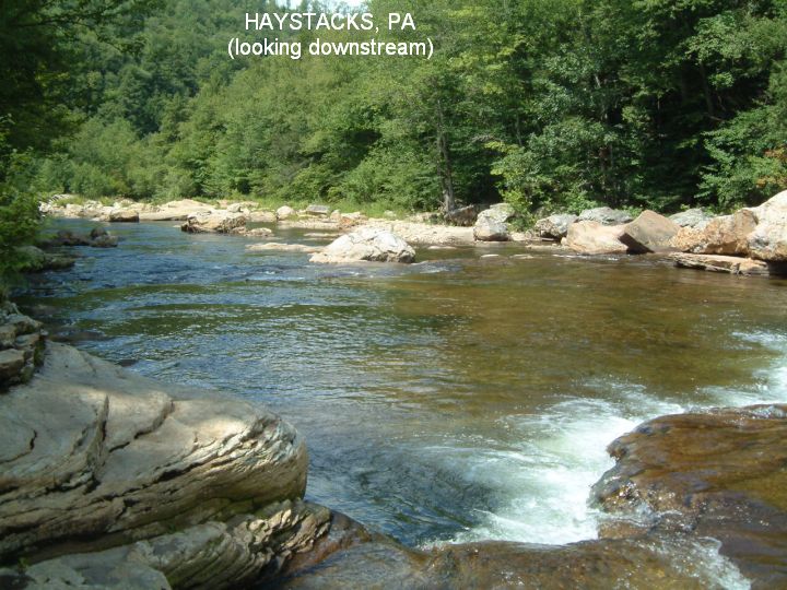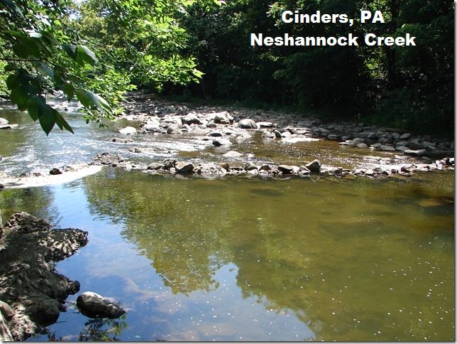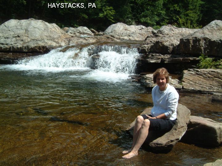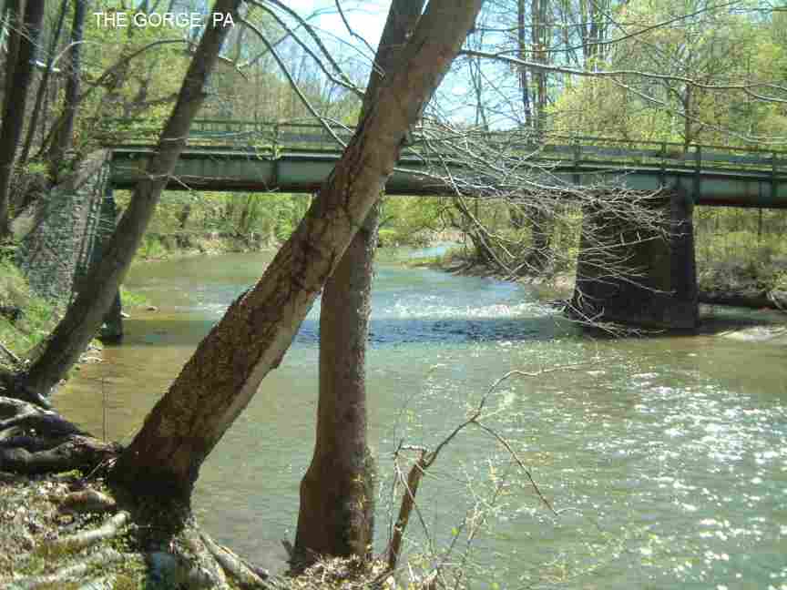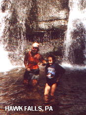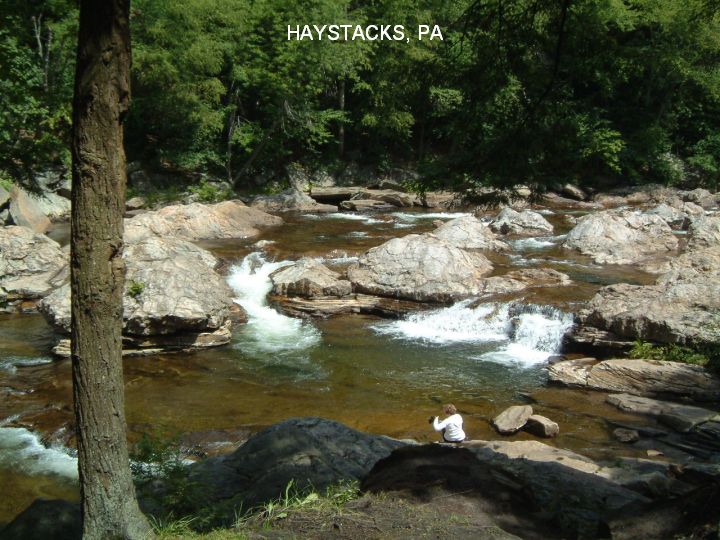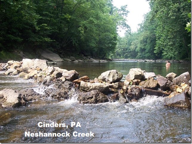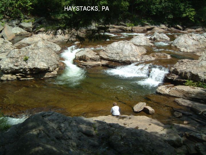 STONY FORK [STON]: Several very scenic swimming holes in Stony Fork Creek. PHOTO 1 , PHOTO 2 , PHOTO 3 , PHOTO 4. This description from a visitor in 2007:" At Little Falls, Stony Fork PA, the depth of the water here in the summer during the hot season is 7-10 feet deep. Great place for swimming, must be careful jumping because there are two large boulders in the water that are larger enough to stand on in the middle and keep you above water. Within 30 feet of Little Falls, downstream around the bend is another deep pool 6 to 8 feet deep during the summer season. From where the pull off is for Little Falls, go down the road less than a half a mile (actually, about .1 miles) and there is a steep trail that goes over the bank. At the end of this trail is the prime jewel of the creek. Big Falls, Stony Fork PA. YOUTUBE . It is a deep azure colored hole whose depth is much debated." (see what you think it is.) "People jump off the tops of the pine trees around the hole into the water and never touch bottom. No one ever has". (or so it is said...)"