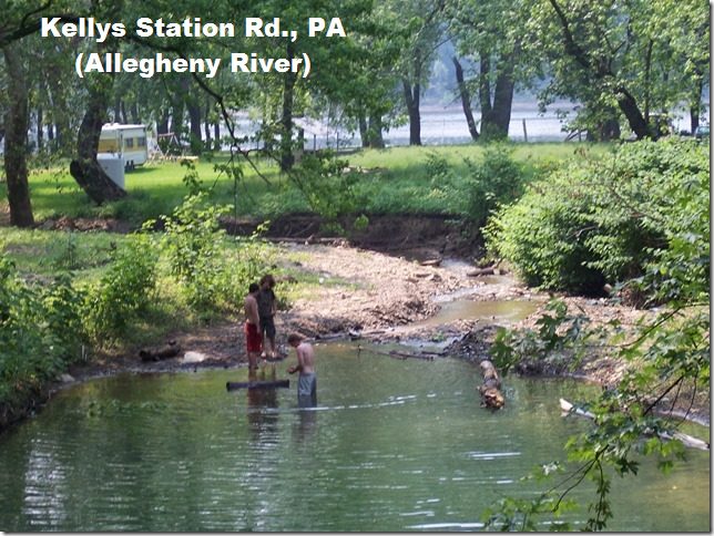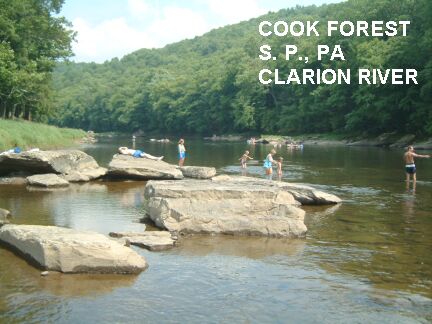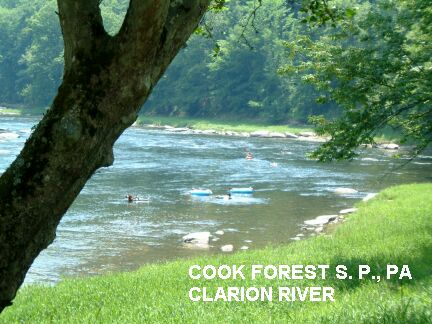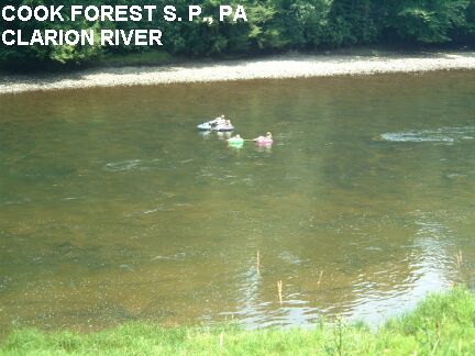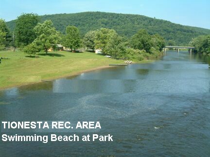 DESCRIPTION | Swimming places in the "Outflow" from an Army Corps of Engineers dam which forms Tionesta Lake - it is officially called the "Tionesta Recreation Area". There is an Army Engineers campground here as well as a city park which has a swimming (grass) beach and lifeguard. (NOTE: In a visit here in 7/04, locals said that the swimming beach was not in operation.) It is possible to tube or to play in the water by the campground as well, but it is quite shallow by the campground and not really a swimming place. |