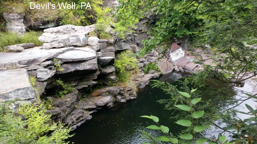 DESCRIPTION | Swimming holes in creeks near Blackwell at the southern end of the very spectacular Pine Creek Canyon (aka "The Grand Canyon of PA") in the Tioga State Forest. If you canoe through the canyon (usually there is only enough water in the early spring), you may end your trip near here at Blackwell. See "DIRECTIONS" below for details. THERE ARE MANY RATTLESNAKES IN THE CENTRAL PA AREA, BE CAREFUL! DO NOT PUT YOUR HANDS OR FEET ANYWHERE YOU CANNOT SEE FIRST, LIKE UNDER A ROCK OR LOG OR ON A LEDGE. SNAKE ALERT . |