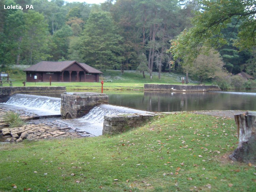 exit 23 for PA-164 east through Roaring Spring and Martinsburg. Turn north (left) on RT 26 and go about 6 miles then turn east (right) at Entriken on RT 994 (Old Plank Rd) and cross the bridge over Raystown Lake, then: