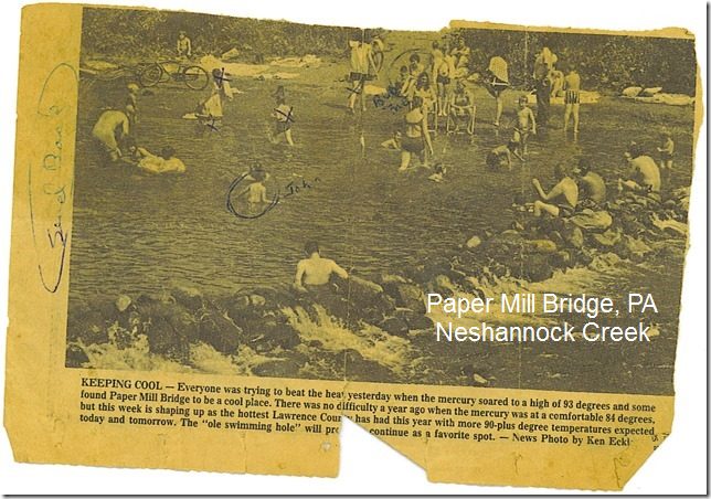 DESCRIPTION | Local swimming hole in creek near road and railroad. No further details. |