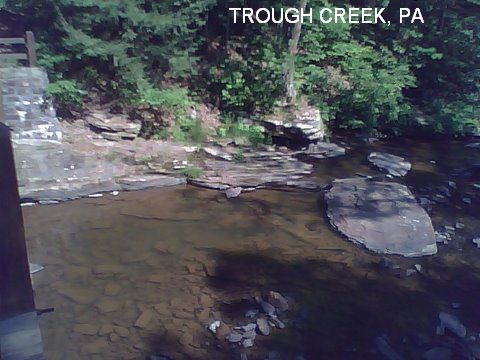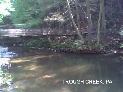 TROUGH CREEK S. P. [TROU] A couple of nice informal water play/swimming places in Trough Creek S, P.. The first one is just below the Swinging Bridge (you will see signs to the swinging bridge and a parking area for it) and has a little rock cliff for low, easy jumping (check for water level and hidden rocks first). PHOTO , PHOTO , PHOTO . LAT,LON lat=40.32233,lon= -78.12945 (source: measured) (accuracy: approx) LINK TO GOOGLE MAP. Another shallow but nice water play area is at picnic area #5, further down the road from the swinging bridge and past the ice cave. LAT,LON lat=40.33105,lon= -78.12572 (source: measured) (accuracy: exact) LINK TO GOOGLE MAP.