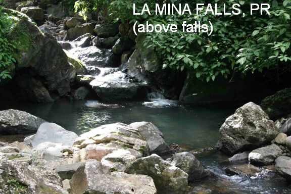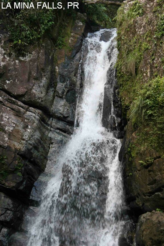 LA MINA FALLS [LAMI]: La Mina Falls is about a .5 hour hike on the La Mina trail. First you come to a small swimming hole above the falls, then to La Mina Falls itself - a beautiful 35 foot cataract with a swimming hole at the bottom. PHOTO , PHOTO , PHOTO , LINK TO PHOTO OF LA MINA FALLS LINK TO DOWNLOAD AN MPG MOVIE which is of these falls.