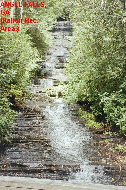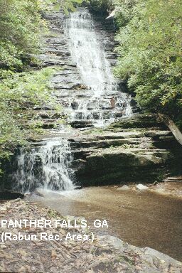 RABUN BEACH RECREATION AREA [RABU]: The Rabun Beach Recreation Area, in the Chattahoochee N.F., has a very nicely developed swimming area in Lake Rabun PHOTO-RABUN BEACH and, a short hike away, two very pretty, delicate stairstep falls, Panther Falls PHOTO-PANTHER FALLS and Angel Falls PHOTO-ANGEL FALLS . The pools at the falls are not deep enough for swimming, but Panther Falls has a large, shallow, sand bottom pool that would be good for a small one to wade and get their head under the delicate falls.
