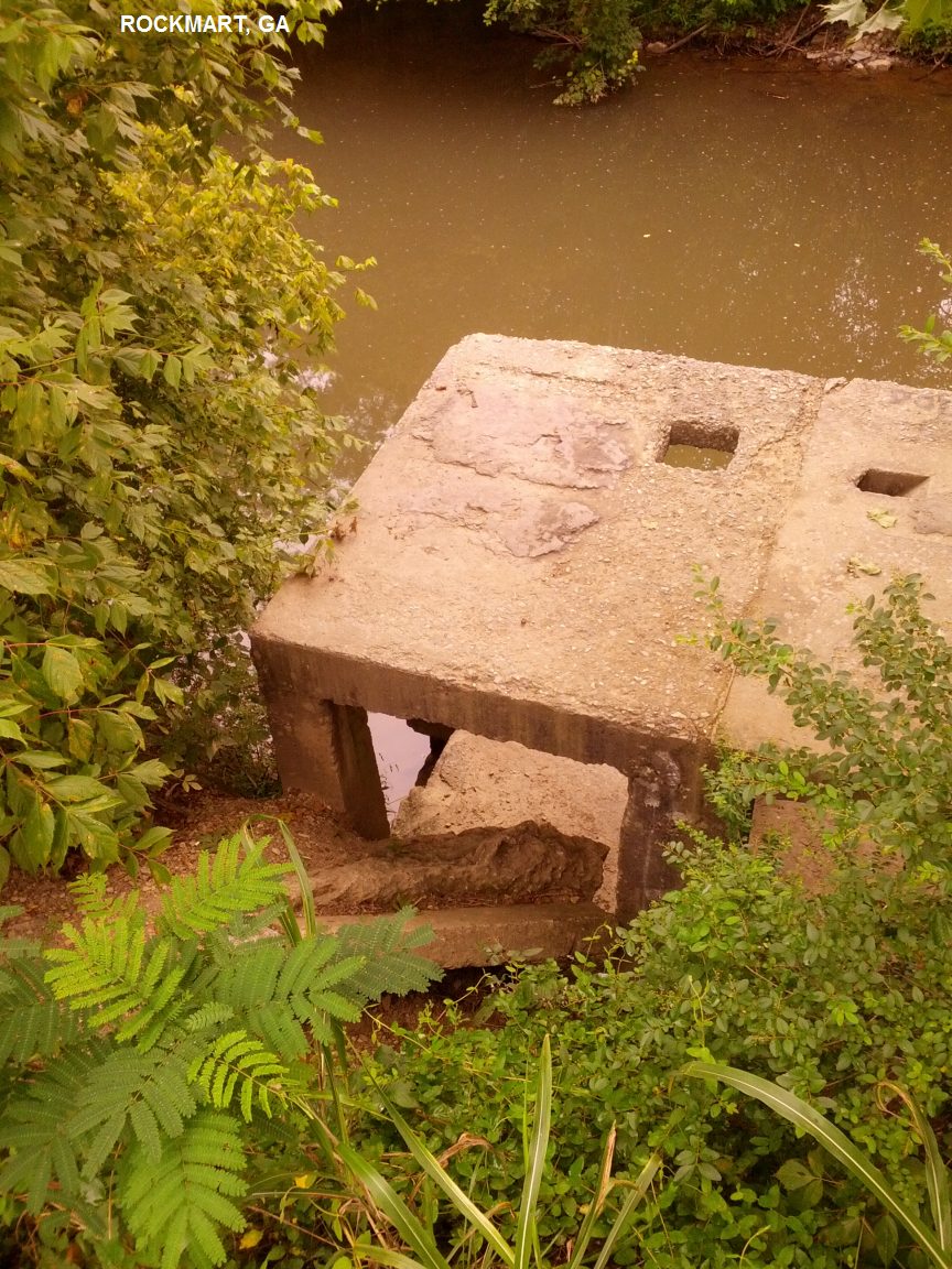 DESCRIPTION | A deep swimming hole in a creek near the Rockmart quarry in the town of Rockmart. You can jump off the concrete base of an old pump station into a dammed portion of Thompson Creek. It is on the new Silver Comet Trail , a paved hiking-biking trail over 37 miles long, starting at Mavell Rd. in Smyrna going to Water Street in historic downtown Rockmart. The swimming place is very near the Rockmart end of this trail, on the south side of the trail across from the quarry, marked only by a small path.