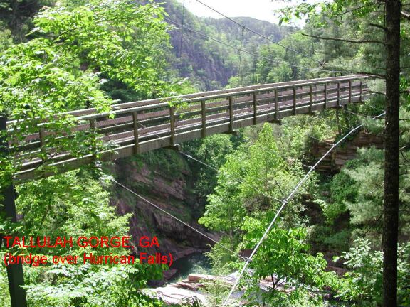 TALLULAH GORGE S. P. [TALL]: This is a spectacular gorge on the Tallulah River - 2 mi long and 1,000 feet deep. You need a permit to enter the Gorge. Second in depth to the Grand Canyon. Part of the movie "Deliverance" was filmed here. There is one waterfall where you can swim, Bridal Veil Falls. You can slide over this falls, but be very careful! PHOTO 1 , PHOTO 2.