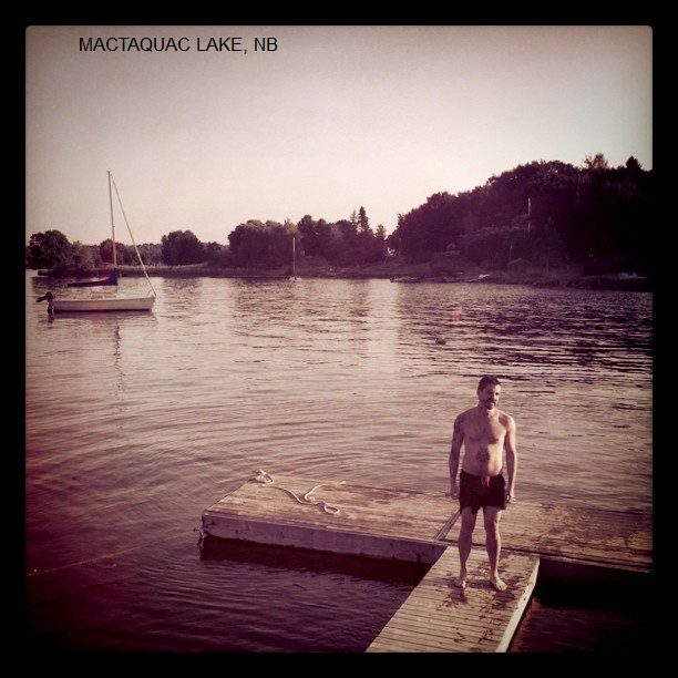 MACTAQUAC COVES [MACT]: Secluded coves for lake swimming. Unofficial, bathing suits required, no facilities, no fees, be very careful. PHOTO. To get here from above, continue on Mactaquac Rd, cross the dam and the road becomes RT 105. Follow past the Provincial Park for about 10 minutes and lookout for coves. After you pass the second cove, as you climb the hill and are headed down, there is a small, hidden driveway on the left. Turn and park at your secret cove for swimming. LAT, LON : lat= 45.905244, lon= -66.910738(source: measured by another) (accuracy: approximate) LINK TO GOOGLE MAP. Pretty confident. Verified by another. Updated 9/2014.