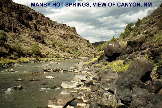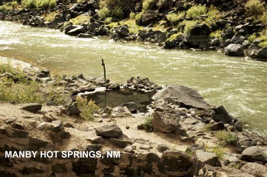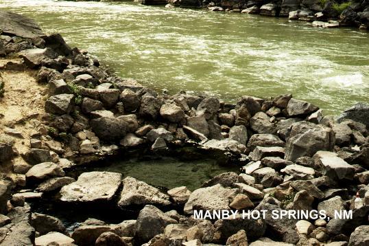 MANBY HOT SPRINGS[MANB]: Hot springs with two pools and nice sand bottom. (One pool is obvious when you get there, a smaller but perhaps warmer one is behind the stone wall of an old building that used to be there.) Right on the banks of the Rio Grande at the bottom of the canyon at an old stagecoach crossing. Nice hike down on gradual grade where old stagecoach road used to be. May be flooded at high water; otherwise can cool off in the river. PHOTO , PHOTO , PHOTO . LAT, LON :lat=36.5072, lon= -105.7229(source: Soak.net files) (accuracy:exact) LINK TO GOOGLE MAP.