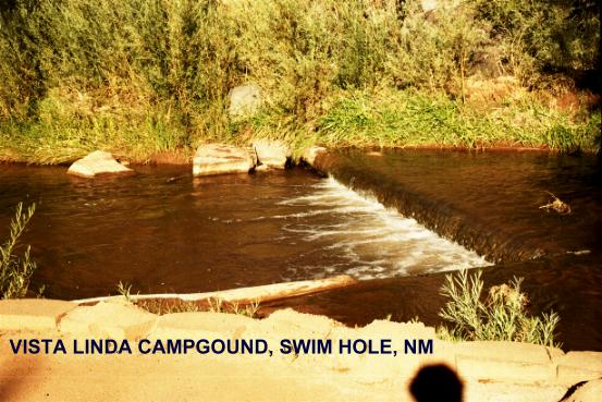 CAMPING | There are a number of campgrounds along RT 4 in the Santa Fe N.F.. My favorite is Vista Linda campground, south of Jemez Springs on RT 4. I believe there is a swimming hole in the campground behind site #8 PHOTO . |