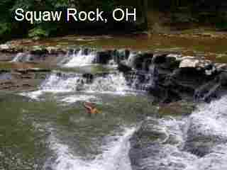 SQUAW ROCK [SQUA]: In the South Chagrin Reservation (a Cleveland Metro Park), southwest of Chagrin Falls, there is a broad, low horseshoe-shaped falls with water play and swimming (depending on depth) below the falls.