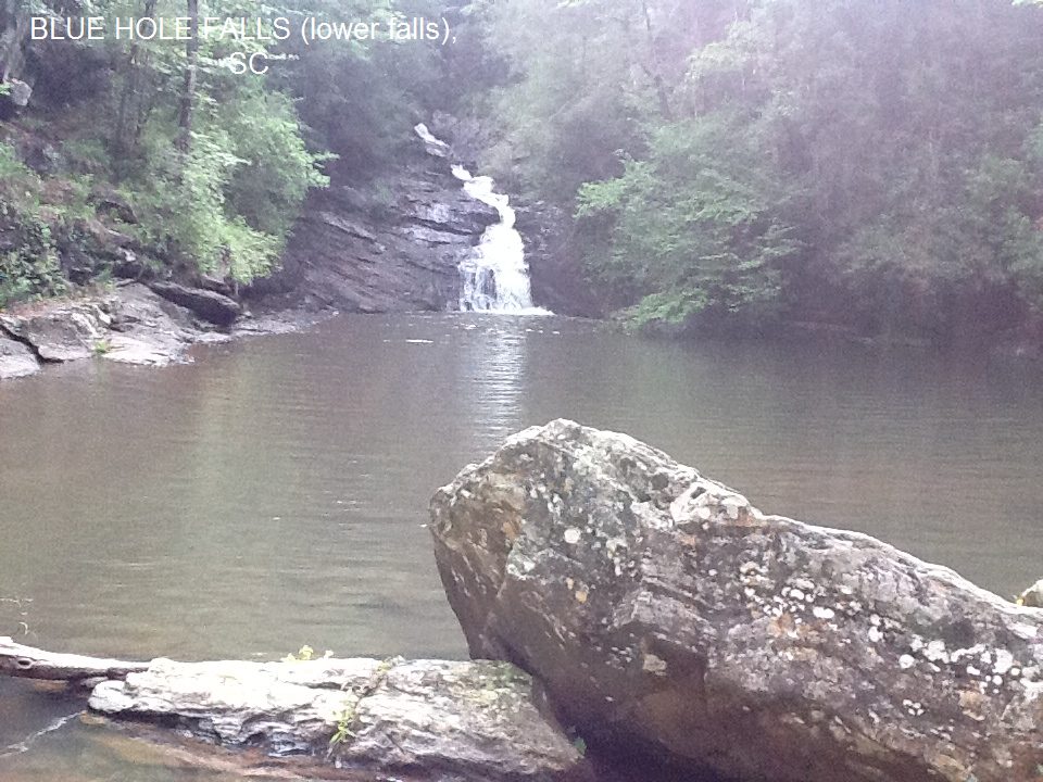 BLUE HOLE FALLS/CEDAR CREEK FALLS [BLUE]: A two level falls (upper and lower), with swimmable pools at bottom of both. The upper falls is Cedar Creek Falls, the lower is Blue Hole Falls. It is somewhat more difficult to get to the bottom of the lower falls.