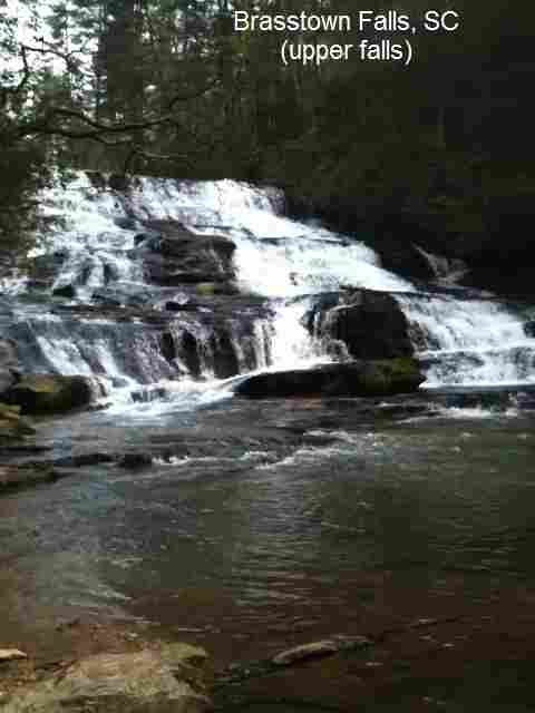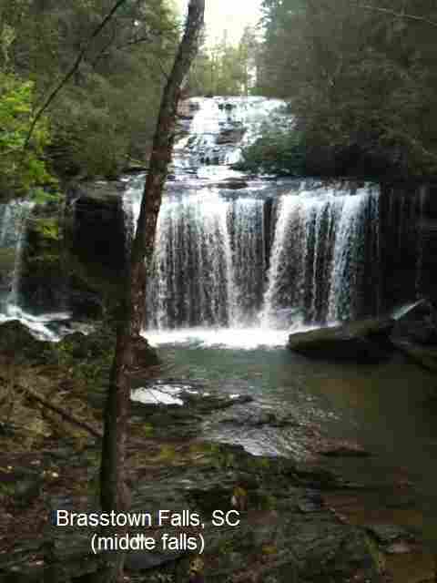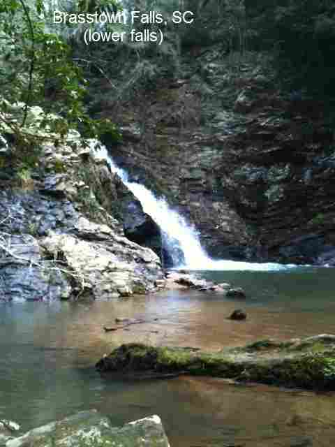 BRASSTOWN FALLS [BRAS]: Spectacular falls with 3 level falls in Brasstown Creek with multiple pools for swimming (shallow - more for wading and water play). Somewhat more difficult to get to lower levels. There is a very nice walk-in primitive camping here at the top of the falls, a short walk in from the parking area. PHOTO 1 , PHOTO 2 , PHOTO 3 .