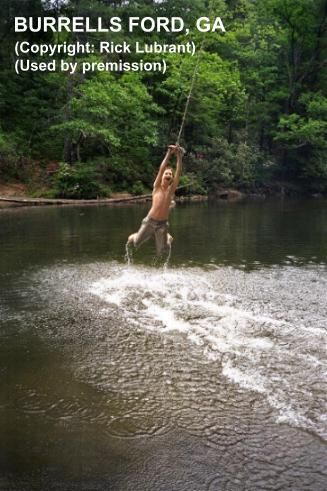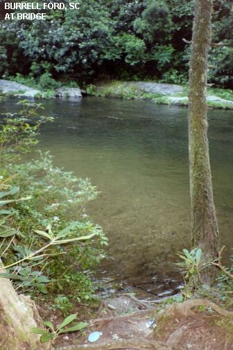 BURRELL FORD [BURR]: Several swimming places in the Chattooga River in the Burrell Ford area, one near a bridge and another at the Burrell Ford Campground. YOUTUBE . To get here: Continue northeast on RT 107 from the Licklog Falls turnoff (above), past the Cherry Hill Campground and turn left on Burrell Ford Rd. (well signed). Drive down this road to the Burrell Ford Campground and park (this is a walk in campground, about a .25 mile walk). Walk down to the campground which is on the Chattooga River - there are swimming places here. PHOTO AT CAMPGROUND. To get to the other swimming place, continue down Burrell Ford Rd. a short distance and cross the bridge over the Chattooga river. PHOTO 1 AT BRIDGE , PHOTO 2 AT BRIDGE . Park on the left and walk to the river. The swimming place is here. Very confident. Verified 7/2003. Updated 7/18/2003.LAT, LON lat=34.973, lon=-83.114(source: measured ) (accuracy: approximate) LINK TO GOOGLE MAP.