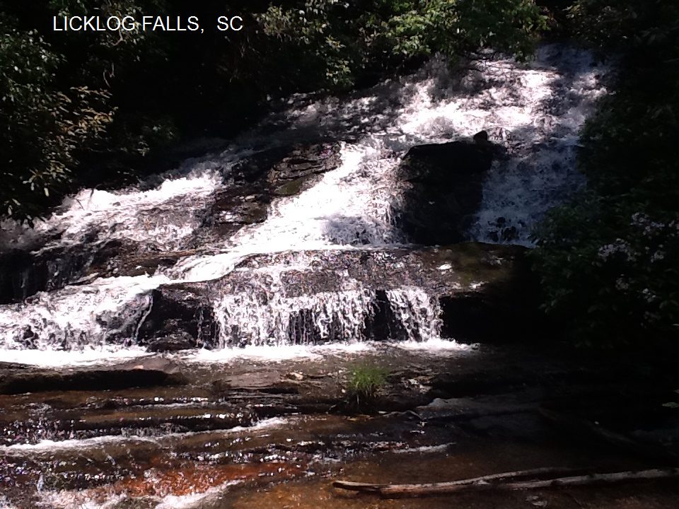 Hike west on the Foothills Trail (follow white blazes) for .5 mile and turn left onto the Chattooga Trail (black blazes). Go .2 miles to Pigpen Falls, which has a small pool at the bottom. To continue on to Licklog, cross the footbridge and go .2 miles on the Chattooga Trail. The first level of Licklog Falls is on the right side of the trail. Licklog has a large pool with a sandy area. LICKLOG PHOTO , YOUTUBE VIDEO. LAT, LON lat=34.92883, lon=-83.12975(source: DeLorme ) (accuracy: general area) LINK TO GOOGLE MAP.Pretty confident. Not verified. Updated 3/18/2007
