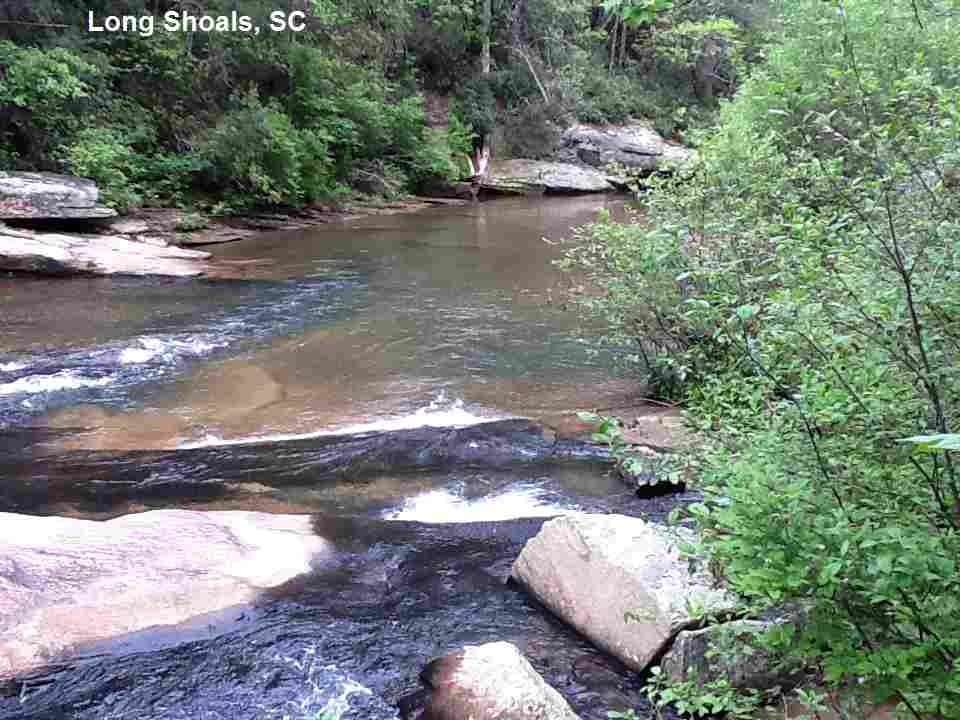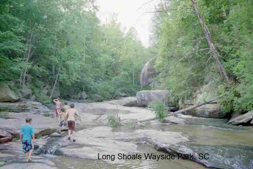 LONG SHOALS WAYSIDE PARK [LONG]:A cascade falls/sliding rock in Little Eastatoee Creek at a nice wayside park and picnic area in Poe Creek State Forest. This is a quote from Allen Easler's South Carolina Waterfalls site - photos & info : "Long Shoals are a popular spot for locals and tourists alike...slide down the rock into the cool waters on a warm summer day. Numerous organizations and community volunteers have transformed this old party spot into Long Shoals Wayside Park with parking, trails, picnic tables, bicycle rack, and a portajohn. From the upper parking lot, follow the "trail" signs down to the Long Shoals. Or, park in the lower lot and take the fishing access trail to an area downstream of the falls." This from a visitor in 2010:"Thought this place should be on your list, lots of fun for the kids to slide down and land in this pool, our 6 to 11 year old boys (5 in total) loved it." PHOTO , PHOTO , PHOTO , PHOTO , PHOTO , YOUTUBE VIDEO. To get here: Continue on RT 11 west of Sliding Rock above and look for signs to Long Shoals Wayside Park. Very confident. Verified 9/2011. Updated 9/2011. LAT, LON lat=34.94822, lon=-82.85211 (source:map) (accuracy:approximate) LINK TO GOOGLE MAP.