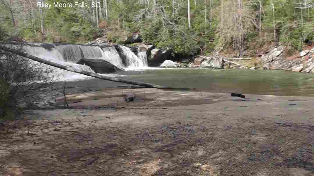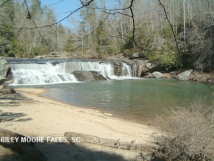 RILEY MOORE FALLS [RILE]: A primo swimming hole! Huge pool, sandy beach, gradual entry at the foot of a beautiful waterfall. PHOTO , PHOTO . Great swimming place for the whole family. An easy hike of about 1 mile each way. Camp nearby at Chau-Ram park (see above) and visit this great spot! This is a quote from Allen Easler's South Carolina Waterfalls site - photos & info : "Riley Moore Falls, at only 10 to 15 feet high, is rather short in comparison to most other falls in the mountains. Still, the facts that it occurs on the Chauga River (whitewater cousin of the Chattooga, one ridge west) and that is at least 50 feet wide make it special ..."